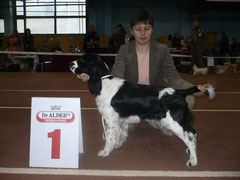 Ната Тивара (Ната) Пол: сука Дата рождения: 19.10.2010 Дата смерти: 23.06.2017 Родители: Spring Cheiz Foresight Of Success и Spring Cheiz Total Eclipse Родословная:смотреть таблицу Окрас: бело-шоколадный Заводчик: Н. Тереньтева Владелец: Е. Нифонтова - Т. Ледовских Награды: Призёр Чемпионата Европы 2011 в Нидерландах - 4 место в классе юниоров, 2место в в классе юниоров на выставке САС в Леувардене (Голландия), Лучший Юниор на Монопородной выставке английских спрингер-спаниелей 2011, Лучший представитель породы на Бухарест Виннер Шоу в Румынии, JКЧК,4 х JCAC ЧЕМПИОН РФОС, 2х BIG-3, 4 x СACIB, 2 x Res CACIB , 2 x СС, КЧК, ЧЕМПИОН РОССИИ, Чемпион Румынии, Чемпион Белоруссии, Вице Чемпион Европы 2012 , ИНТЕРЧЕМПИОН Прикус: глубокий ножницеобразный, полнозубая Рост: 51 см Исследования на генетические заболевания: 1)DNA PRA Cord 1 -clear(наследственная атрофия сетчатки глаза):здорова-сlear 2)PFK-clear(недостаточность фосфо-фруктокиназы наследственное аутосомальное заболевание):здорова-сlear 3)ND-А(28.11.14)