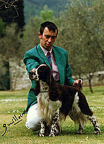 Рус Айрин'с Джетти Бланш (Жеди) Пол: сука Дата рождения: 25.10.1998 Дата смерти: 09.09.2014 Родители: Джефф Дю Пижонье Брюйер и Рус Айрин’с Ламбада Дансинг Родословная:смотреть таблицу Окрас: бело-шоколадный Заводчик: Владелец: Награды: Чемпион России, РКФ, Чемпион Национального Клуба Спаниелей, 9 CAC, R.CACIB, 15 BOB, 4-BIG-1, 4-BEST-3, 5 KЧK, Чемпион АНКОР, Чемпион РКФ, 15 x BOB, 2xBIS ветеран, 12 х Лучший Ветеран, 2 д.3 ст. по полю Прикус: глубокий ножницеобразный, полнозубая Рост: 50 см Исследования на генетические заболевания: