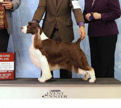 Отеин Миллион Алых Роз Эт Спринг Чейз (Мэйпл) Пол: сука Дата рождения: 20.04.2012 Родители: Сh Laurelwyn Springerlane Continuum и Ch Otein's Dirty Martini Родословная:смотреть таблицу Окрас: бело-шоколадный Заводчик: Lori Nieto, Bob Nieto, питомник Otein (США) Владелец: Награды: 4JCAC, 1 BOB, 1 BIG-2, 3 CAC, Юный Чемпион России, Чемпион России Прикус: плотный ножницеобазный, полнозубая Рост: 49 см Исследования на генетические заболевания: CERF exam Normal, PRA-carrier, ND-B