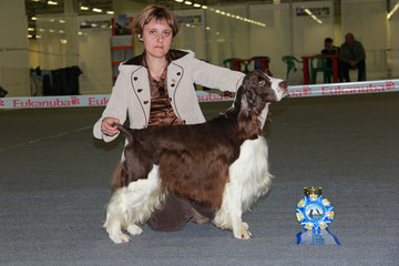 Сегодня собаки из питомника многочисленным составом посетили Чемпионат Спаниель Клуба в Москве.Впервые в Россию был приглашён эксперт из известного английского питомника Mompesson.Судейство было очень строгим и титулы получили только самые достойные собаки!