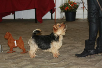 Малыш-бэбик норвич терьер SPRING CHEIZ BLACK JACK(Cedric Von Den Zwei Eichen x Gold And Globe Norina) 3 месяца,вышел первый раз на выставку и выиграл дважды